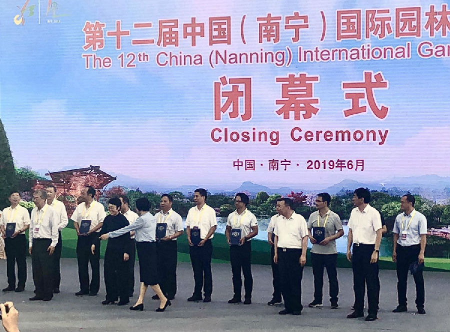 閉幕式上,住房和城鄉(xiāng)建設(shè)部副部長(zhǎng)黃艷發(fā)表致辭,南寧市市長(zhǎng)周紅波對(duì)本次園林博覽會(huì)進(jìn)行總結(jié),中國(guó)風(fēng)景園林學(xué)會(huì)理事長(zhǎng)陳重代表組委會(huì)宣讀展園競(jìng)賽評(píng)選結(jié)果。經(jīng)組委會(huì)組織專家評(píng)審和網(wǎng)絡(luò)投票,我司重點(diǎn)打造的南寧園博園羅漢松園榮獲“最佳設(shè)計(jì)展園”、“最佳施工展園”、“最佳植物配置展園”、“最佳建筑小品展園”四項(xiàng)大獎(jiǎng)。我司亦有幸成為10家上臺(tái)領(lǐng)獎(jiǎng)的單位之一。