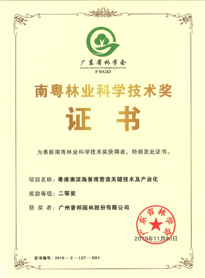 本次大會(huì)上,我司《粵港澳濱海景觀營造關(guān)鍵技術(shù)及產(chǎn)業(yè)化》和《基于富營養(yǎng)化城市水體的濕地生態(tài)修復(fù)技術(shù)》研究項(xiàng)目,均榮獲首屆“南粵林業(yè)科學(xué)技術(shù)獎(jiǎng)”二等獎(jiǎng)。集團(tuán)副總裁譚廣文先生代表公司接受表彰。